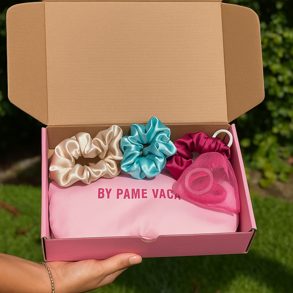 Descubre el descanso más cómodo y chic con nuestro exclusivo Kit Sweet Dreams, presentado en nuestra icónica caja rosa "By Pame Vaca". Cada detalle ha sido cuidadosamente pensado para brindarte una experiencia de relajación total con estilo y suavidad.