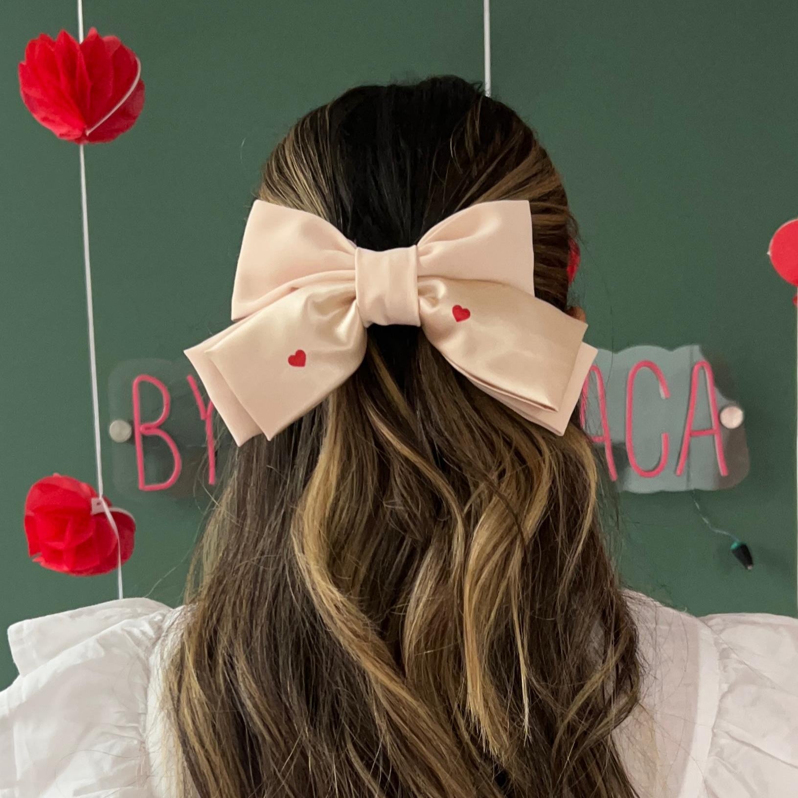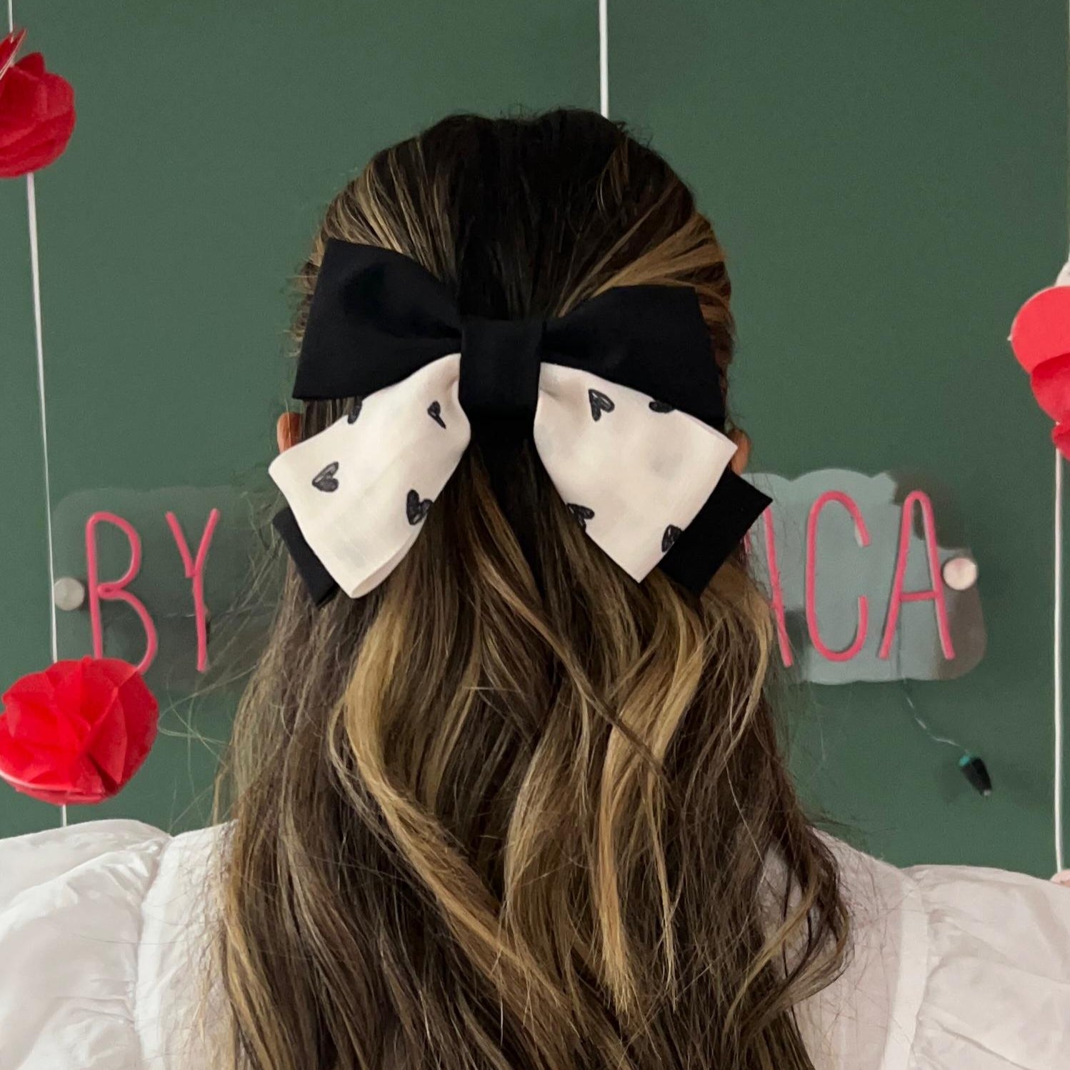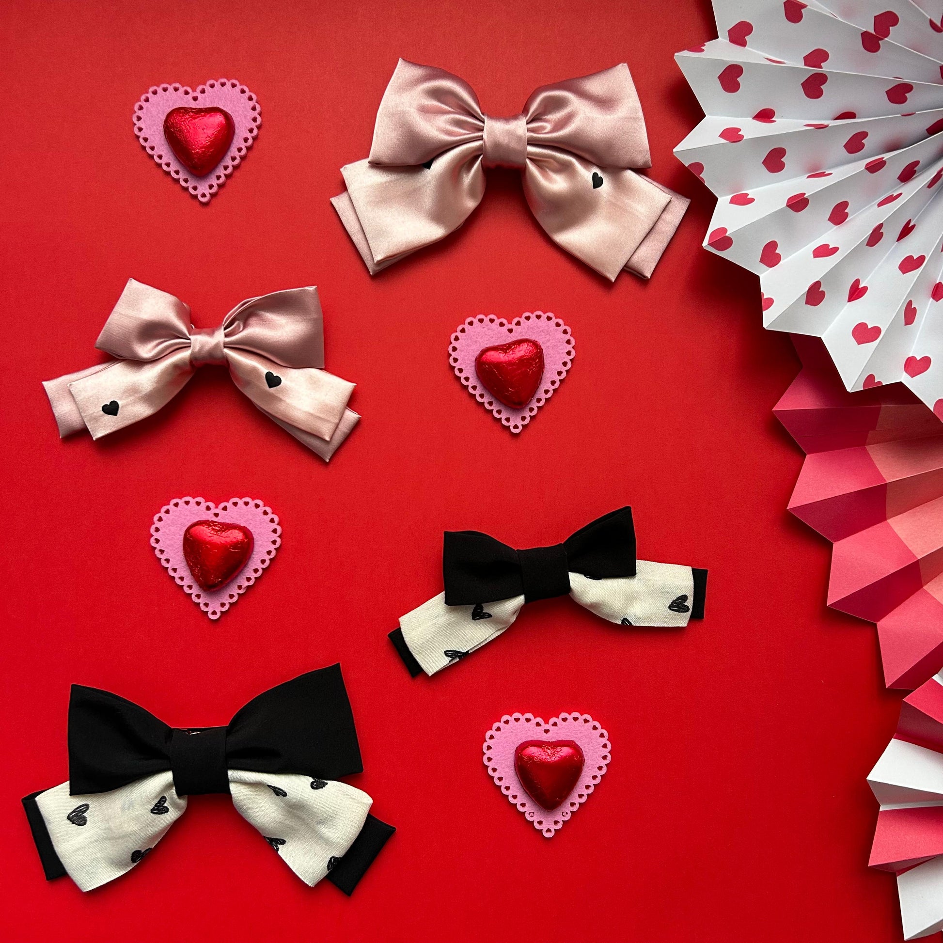 Moños Alicia medianos con corazones sutiles y doble color, perfectos para un look moderno y fresco, el toque elegante para la oficina.