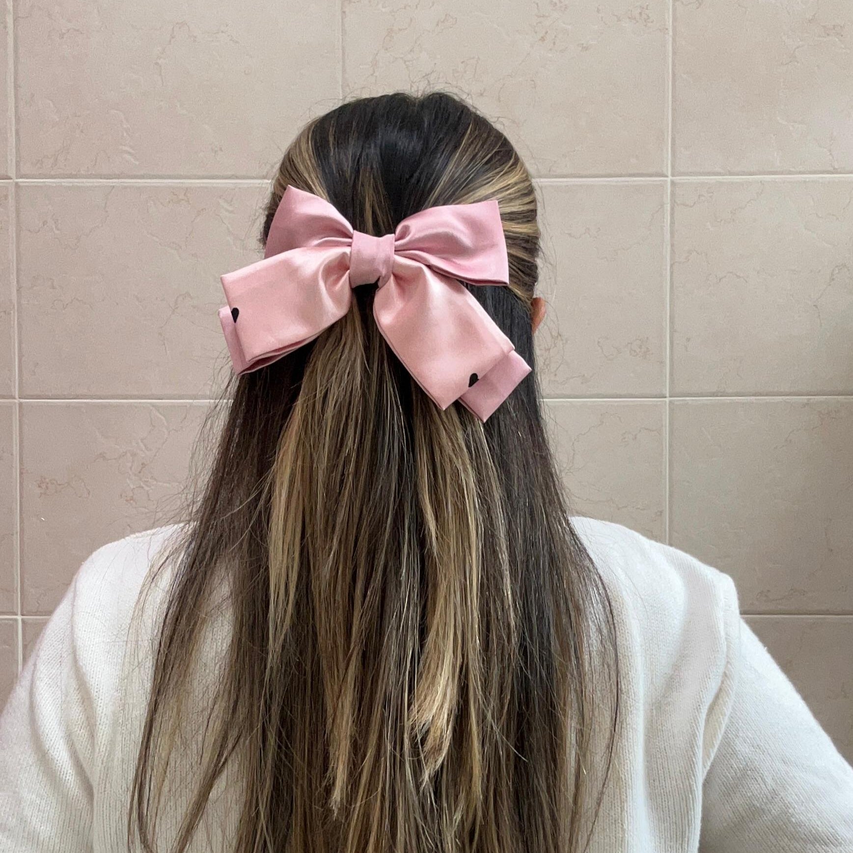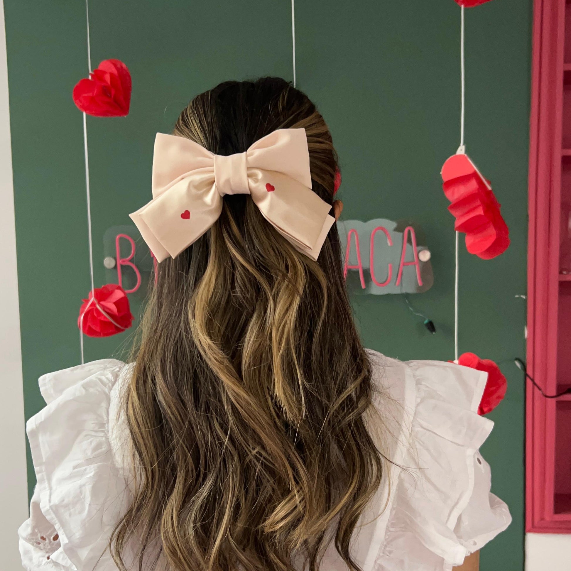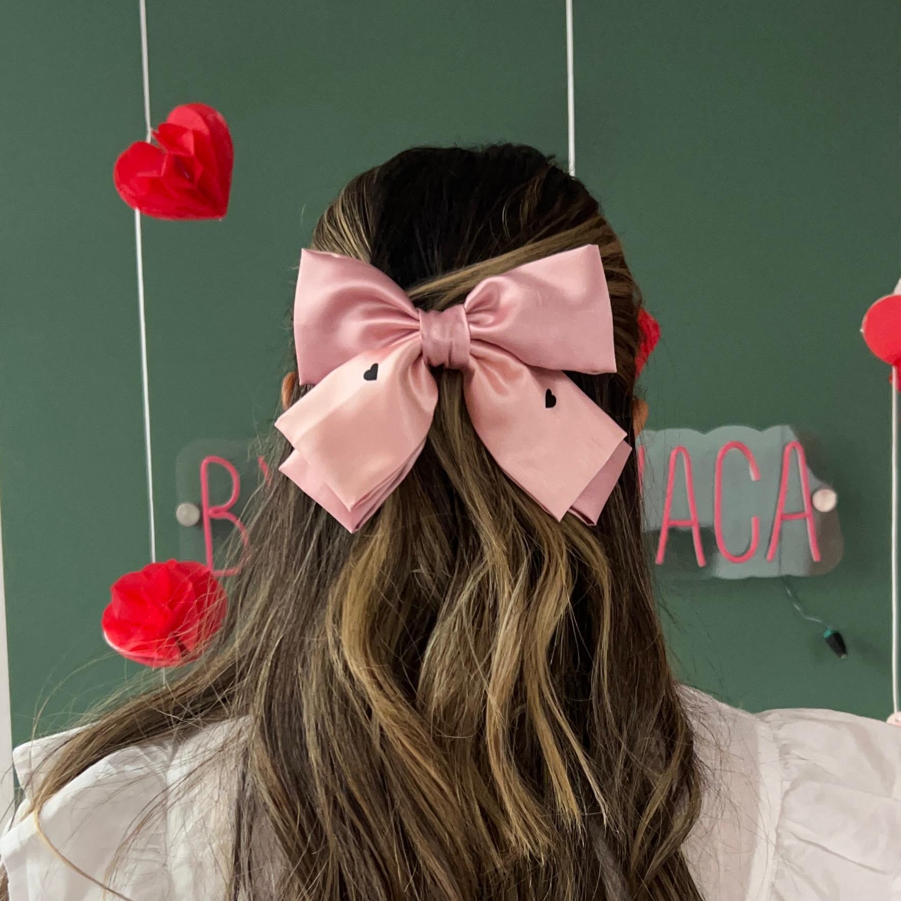 Moños Alicia medianos con corazones sutiles y doble color, perfectos para un look moderno y fresco, el toque elegante para la oficina.