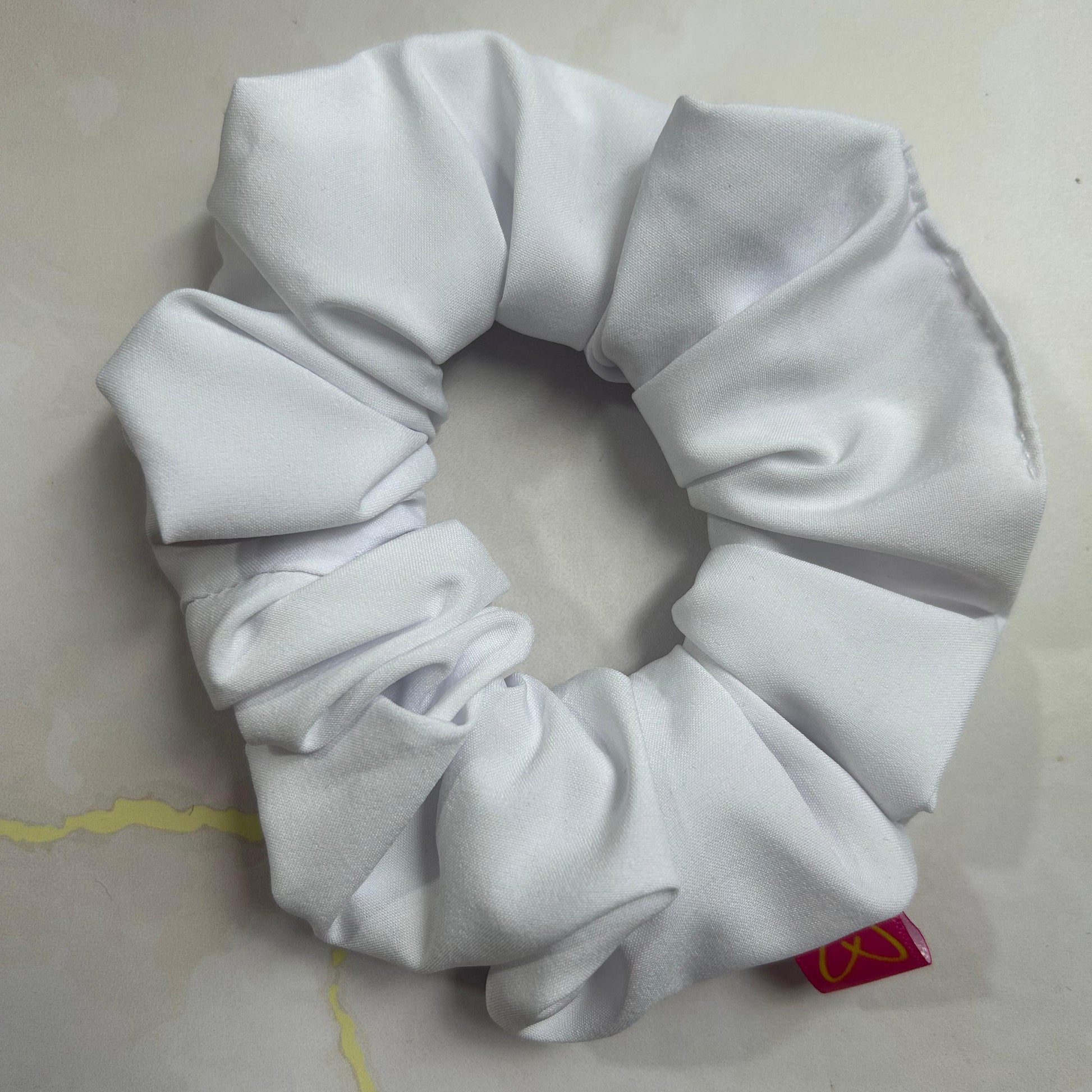 Scrunchie estampada, ideal para añadir un toque de diversión y estilo a tus peinados. Su tamaño delicado es perfecto para un outfit sutil.