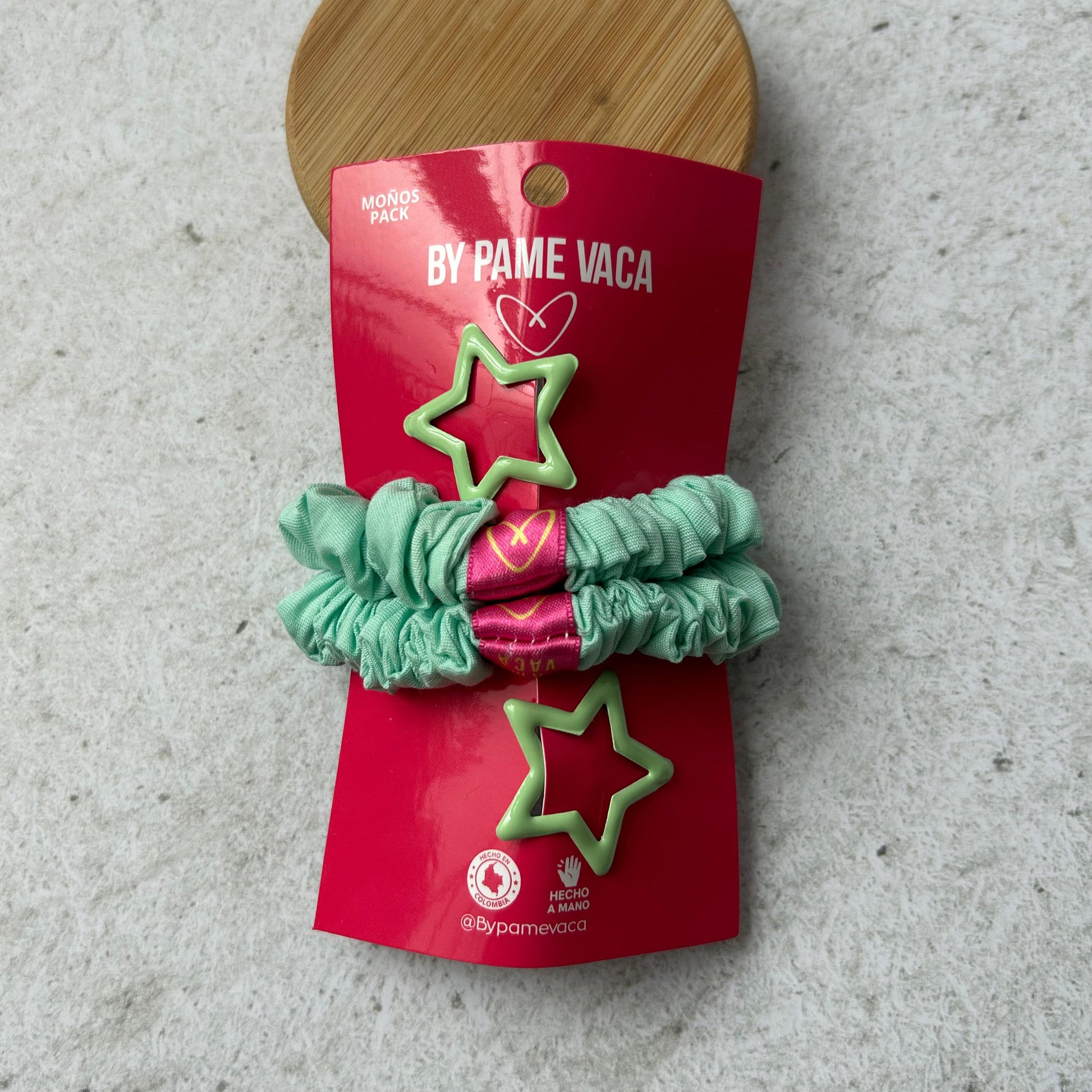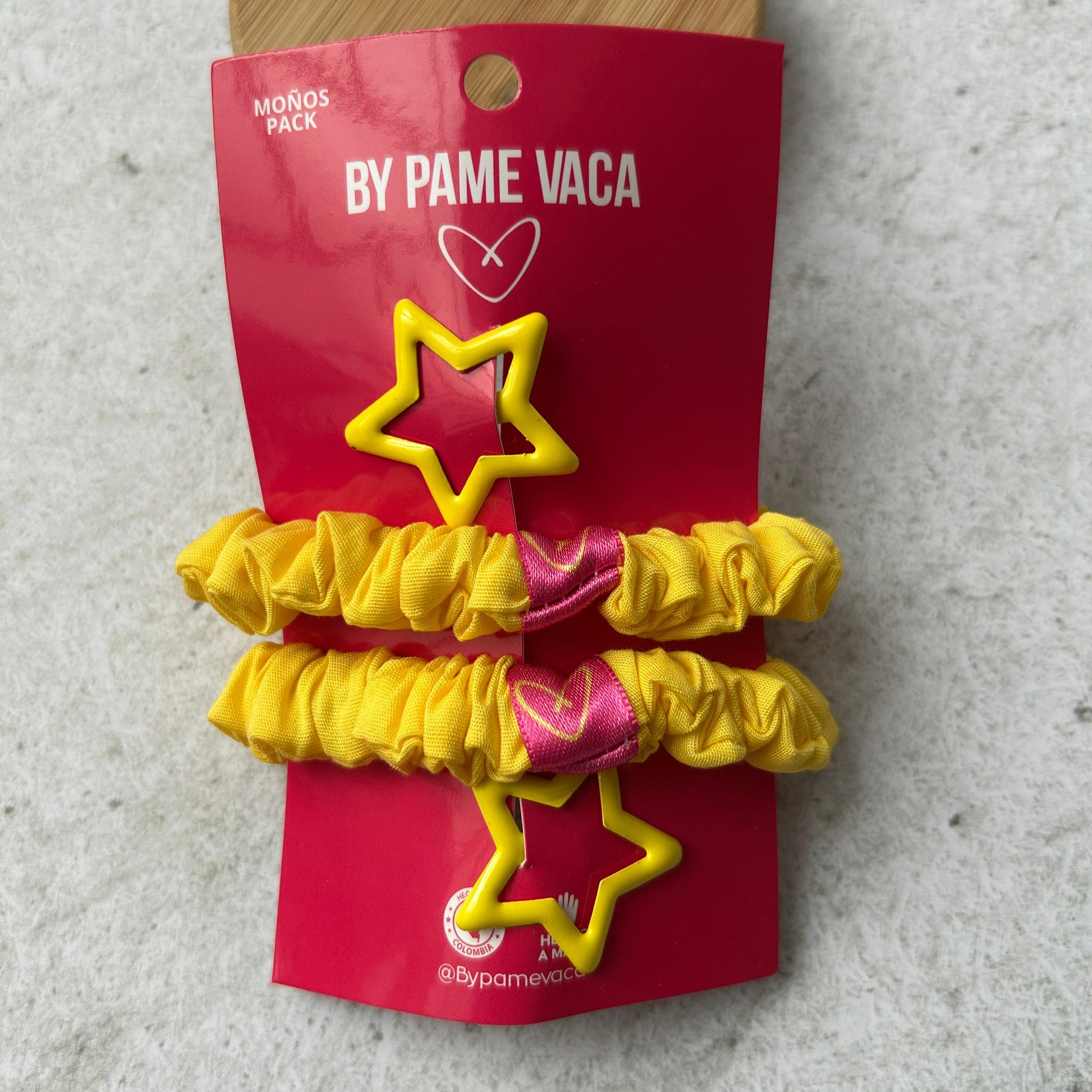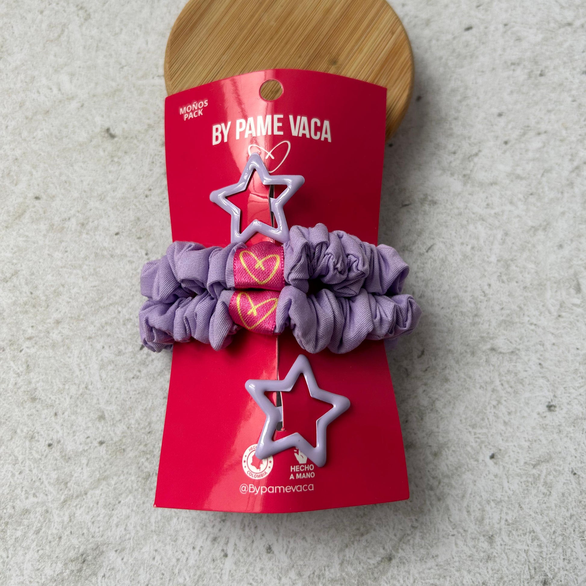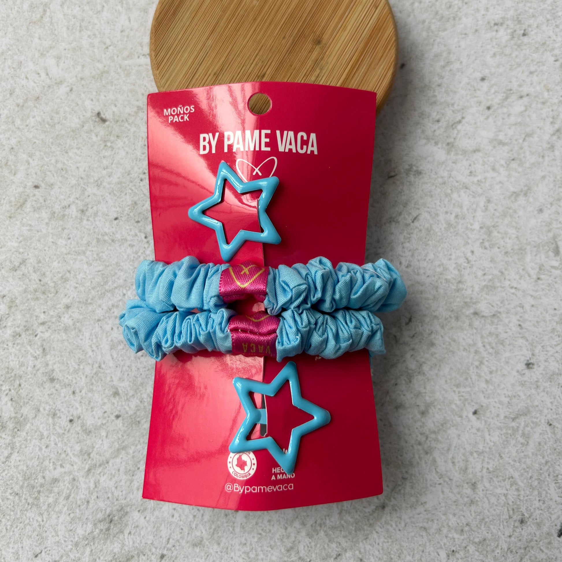 Paquete de 2 scrunchies mini, y 2 hebillas de estrellas, perfectas para peinados delicados y detallados. Agrega un toque divertido a los peinados de tu hija.